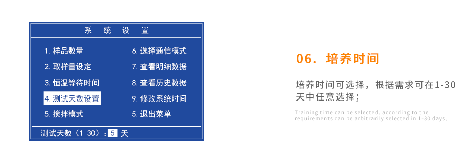 存儲空間大,可存儲20年歷史數(shù)據(jù);培養(yǎng)周期可調(diào)節(jié),根據(jù)需求可以選擇1-30天;