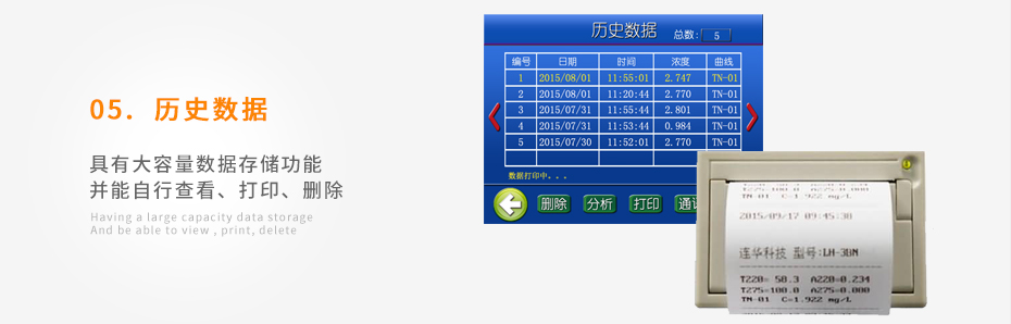 可打印當(dāng)前數(shù)據(jù)及存儲的歷史數(shù)據(jù);